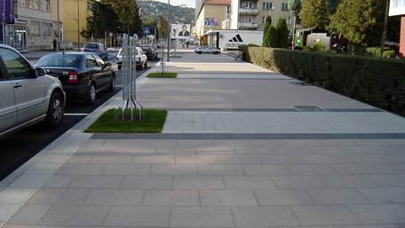 Visokovrijedan opločnik s udjelom zrnaca prirodnog kamena koji pojačavaju izdržljivost površine.