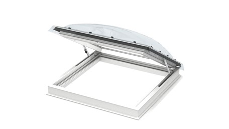 Dobava prozora za izlaz na ravni krov s kupolom, dim. 100x100 cm, izrađen od bijelog PVC kućišta visine 15 cm (ispunjen izolacijskom pjenom), ostakljen, dvostruko energetsko sigurnosno staklo i zaštićeno transparentnom akrilnom kupolom. Prozorom se upravlja ručno. Krilo se može otvoriti do 60 stupnjeva.