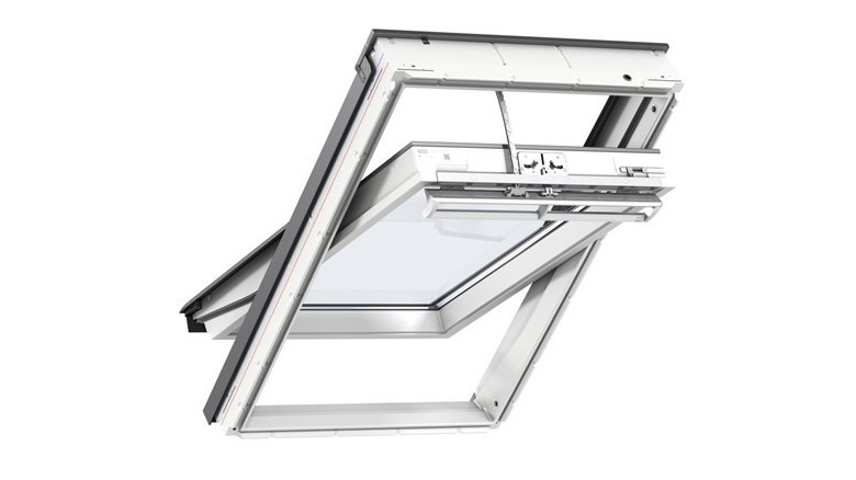 Dobava krovnog prozora dimenzija 55x118 cm, kao VELUX GGU INTEGRA, drvena jezgra obložena zaštitnim slojem od bijelog poliuretana, izvana pokrovni profili od antracit-sivo bojanog aluminija, središnji ovjes, ručka za otvaranje s gornje strane, ventilacijski preklop, dvostruko brtvljenje, dvostruko energetsko sigurnosno staklo.
