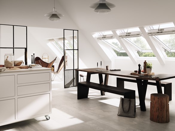 Dobava krovnog prozora dimenzija 78x118 cm, kao VELUX GGU INTEGRA, drvena jezgra obložena zaštitnim slojem od bijelog poliuretana, izvana pokrovni profili od antracit-sivo bojanog aluminija, središnji ovjes, ručka za otvaranje s gornje strane, ventilacijski preklop, dvostruko brtvljenje, dvostruko energetsko sigurnosno staklo.