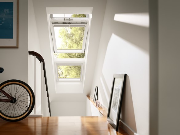 Dobava krovnog prozora dimenzija 78x140 cm, kao VELUX GGU INTEGRA, drvena jezgra obložena zaštitnim slojem od bijelog poliuretana, izvana pokrovni profili od antracit-sivo bojanog aluminija, središnji ovjes, ručka za otvaranje s gornje strane, ventilacijski preklop, dvostruko brtvljenje, dvostruko energetsko sigurnosno staklo.