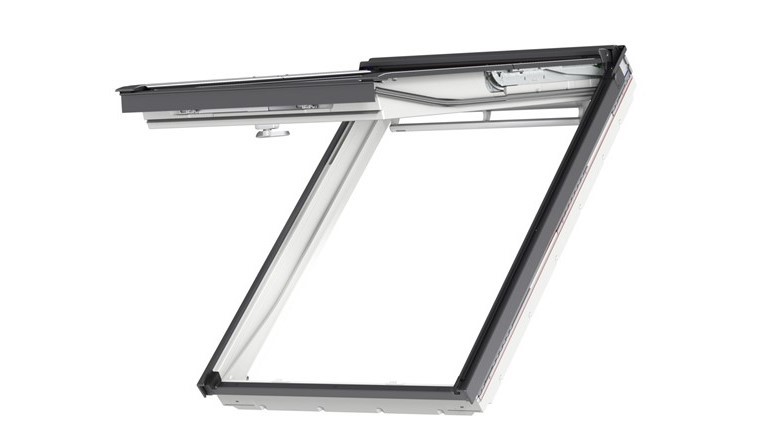 Dobava krovnog prozora dimenzija 55x118 cm, kao VELUX GPU, drvena jezgra obložena zaštitnim slojem od bijelog poliuretana, izvana pokrovni profili od antracit-sivo bojanog aluminija, središnji i gornji ovjes, ručka za otvaranje s gornje i donje strane, ventilacijski preklop, dvostruko brtvljenje, dvostruko energetsko sigurnosno staklo.