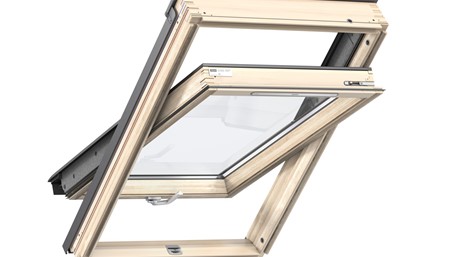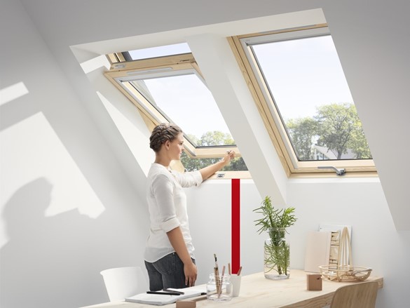 Dobava krovnog prozora dimenzija 78x140 cm, kao VELUX GZL, laminirano drvo zaštićeno slojem bezbojnog laka, izvana pokrovni profili od antracit-sivo bojanog aluminija, središnji ovjes, ručka za otvaranje s donje strane, dvostruko brtvljenje, dvostruko energetsko kaljeno staklo.