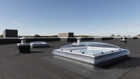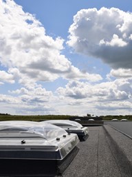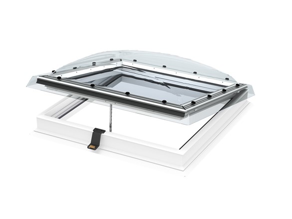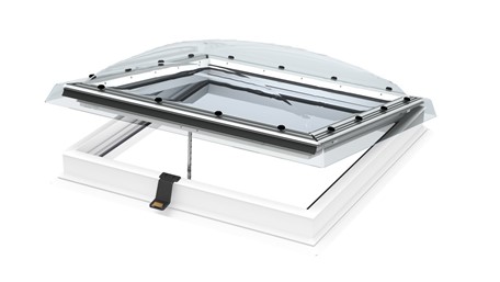 Dobava prozora za ravni krov s kupolom, dim. 150x150 cm, izrađen od bijelog PVC kućišta visine 15 cm (ispunjen izolacijskom pjenom), ostakljen, dvostruko energetsko sigurnosno staklo i zaštićeno transparentnom akrilnom kupolom. Prozor je otklopni, ručno upravljani pomoću isporučene šipke.