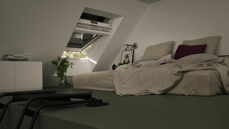 Električno upravljana roleta antracit sive boje, za zamračenje prostora i zaštitu od topline, aluminijske lamele punjene PU pjenom, kao VELUX SML. Vrhunska udobnost upravljanja putem daljinskog upravljača isporučenog u pakiranju. Za visoko ugrađene prozore i GPL/GPU modele prozora preporučujemo SML i SSL modele roleta. Električno napajani model SML spaja se na VELUX INTEGRA® krovne prozore ili uz dodatak KUX kontrolne jedinice na ručno upravljane krovne prozore.Moguće zaustavljanje rolete u bilo kojoj poziciji na prozoru.
