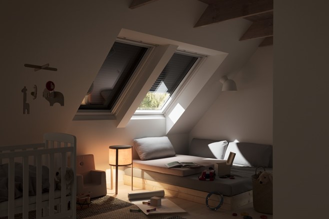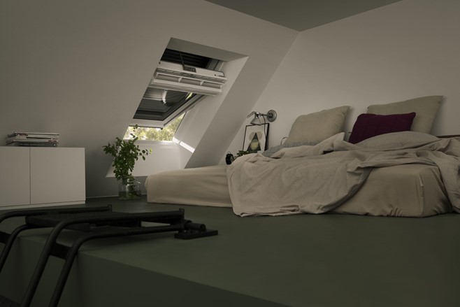 Električno upravljana roleta antracit sive boje, za zamračenje prostora i zaštitu od topline, aluminijske lamele punjene PU pjenom, kao VELUX SML. Vrhunska udobnost upravljanja putem daljinskog upravljača isporučenog u pakiranju. Za visoko ugrađene prozore i GPL/GPU modele prozora preporučujemo SML i SSL modele roleta. Električno napajani model SML spaja se na VELUX INTEGRA® krovne prozore ili uz dodatak KUX kontrolne jedinice na ručno upravljane krovne prozore.Moguće zaustavljanje rolete u bilo kojoj poziciji na prozoru.